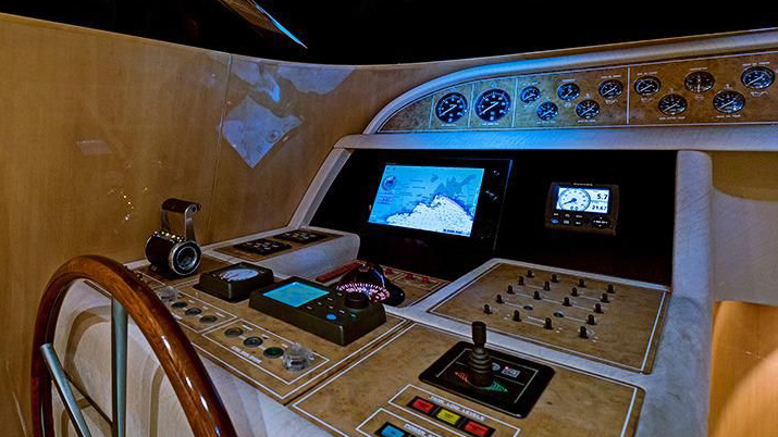 220V-110V (AC), 60 Hz; 24V-12V (DC); 2 x Asea shore power converters (AC 12kVA), allowing world wide shore power conversion; engine battery bank (240 Amp/h); service battery bank (610 Amp/h); parallel switch; batteries are recharged directly by alternators driven by main engines at 24V or by two automatic rectifiers battery chargers (120 Amp service battery charger and 70 Amp engine battery charger; (2) x 20Kw Kohler generators (220V, 60 Hz), each with a 12V cranking battery (100 Amp/h), sound shield, and 3,100 hours; (2) x 50 Amp shore connections + one TV/phone connection at the stern and at the bow; (2) shore power cords aft and (2) on fore deck; one Glendinning cable master for shore power cord; state of the art main electrical panel in utility room with main switches, instruments and breakers; distribution electrical panel in wheelhouse with switches, breakers, alarms and instruments; distribution electric panel in each living area with fuses; all circuits are protected by thermo-magnetic breakers and all 220V circuits are protected by differential breakers; grounding of all circuits and metal elements of the yacht with connection to the zincs on transom; 110V lighting system with indirect fluorescent lights; 24V halogen lights with dimmers in salon and master; night lights for stairs and living areas; courtesy lights outside; 110 V sockets throughout;